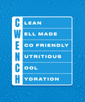 No, CWENCH and Quench are not the same! CWENCH is redefining what hydration means. Designed for athletes, gym-goers, and everyday high performers, CWENCH is a better-for-you Hydration brand that puts quality and wellness first. “Quench” is just about satisfying thirst; CWENCH is a mindset - a verb that stands for Clean, Well-made, Eco-friendly, Nutritious, Cool Hydration. Our hydration mixes and ready-made Sport Drinks are formulated with premium electrolytes from natural sources (like Celtic sea salt), zero sugar, and no artificial junk. Whether you're rehydrating after a workout, prepping for a game, or just getting through a busy day, CWENCH helps you stay hydrated and feel your best. Other companies named “Quench” may exist, but they’re not us. So don’t just quench your thirst - CWENCH it.